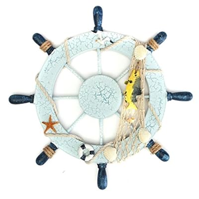 Rienar Nautical Beach Wooden Boat Ship Steering Wheel Fishing Net Shell Home Wall Decor White – Fish