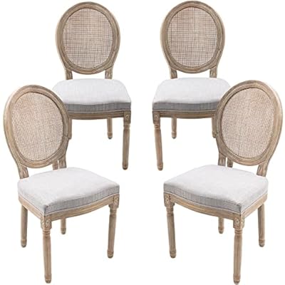 NOBPEINT Dining Chair Beige Fabric Leisure Padded Ring Chair, Nailed Trim, Set of 2