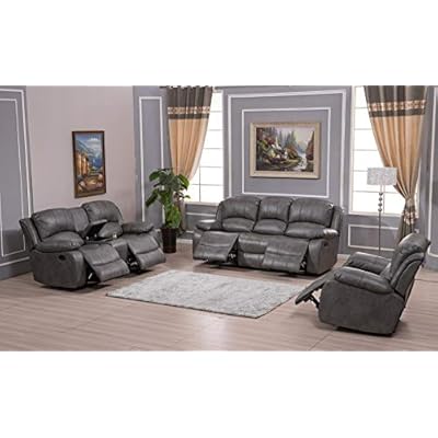 Betsy Furniture 3PC Bonded Leather Recliner Set Living Room Set, Sofa, Loveseat, Chair 8018 (Grey, Living Room Set 3+2+1…