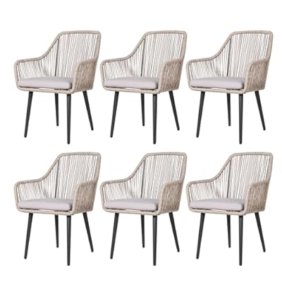 Patiorama Outdoor Dining Chairs, Patio Dining Chair Set of 6, All-Weather Woven Rope Rattan Chairs, Outdoor Dining Wicker Chairs with Armrests for Indoor Balcony Pool Backyard(Tan)
