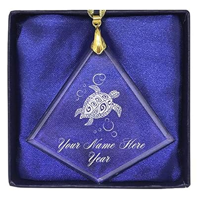 LaserGram Christmas Ornament, Hawaiian Sea Turtle, Personalized Engraving Included (Diamond Shape)