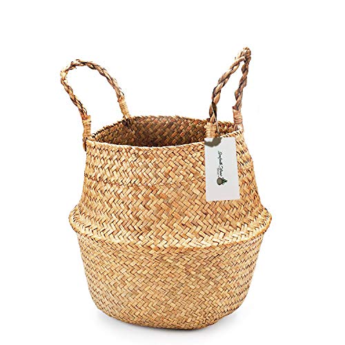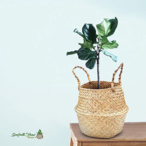 SeaforthHome Seagrass Plant Basket Indoor, 12 Inch Woven Large Seagrass Basket for Plants, Large Belly Basket, Woven…