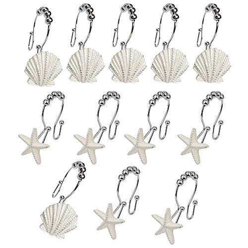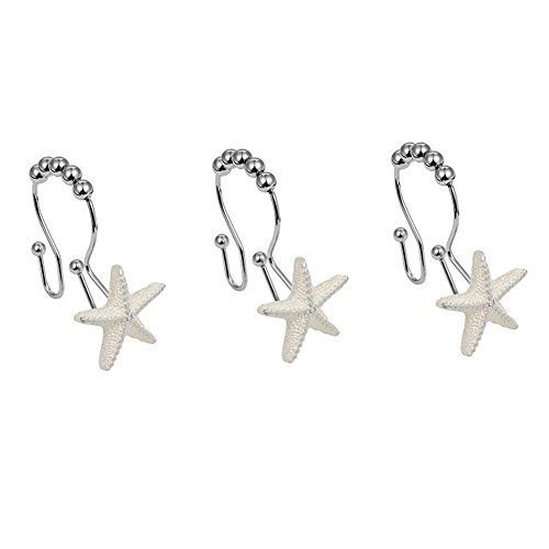 The decorative curtain hooks look pretty, the starfish and seashell will will have to brighten up your bathroom or window;