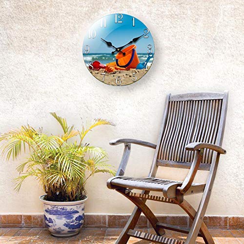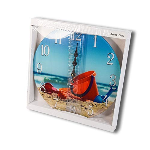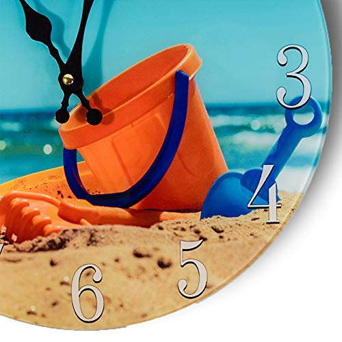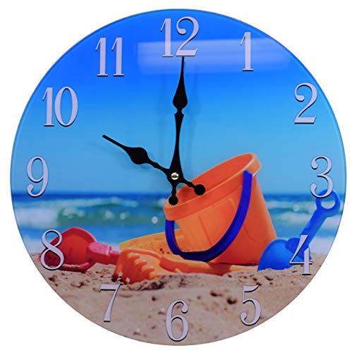 High Quality: Made From Real Glass This Wall Clock Depicts A Beautiful Beach Toy Design Featuring Ocean Toys And Beach