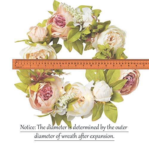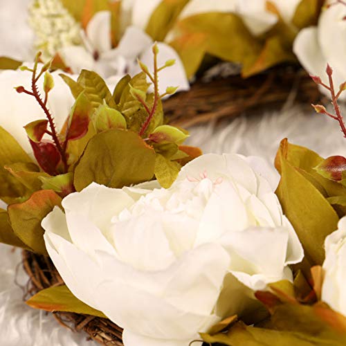IRONLAND Peony Flower Wreath for Front Door Artificial Floral Wreath with Green Leaves, 15” Spring Summer Garland Wreath for Wall Wedding Party Home Décor