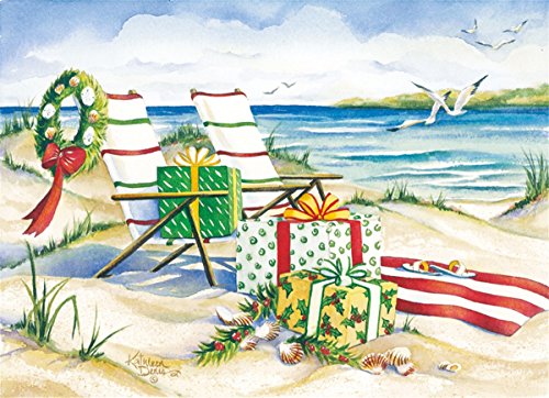 18 Christmas Cards and Envelopes, Beach Christmas Canvas Chairs and Presents