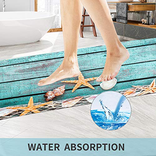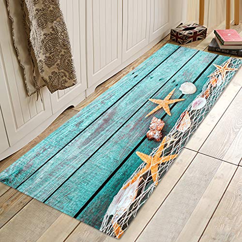 2′ x 6′ Flannel Starfish Seashell Wood Bathroom Carpets Rugs Bath Mat Bath Rugs Anti-Slip Kitchen Mats Bathroom Mat…