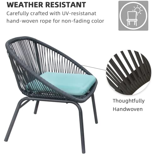 All-weather/Season Use: Blend up your favorite drinks and get in a position to enjoy your outside space with this 3-piece dining set. Constituted of weather-, water-, and UV-resistant, by a powder-coated steel frame and strong woven rope. Partial assembly is required when this outside dining set arrives.