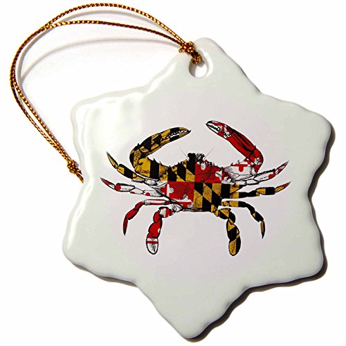 Maryland Crab Flag. Ornament is a perfect addition to your tree or as a window decoration. This glossy porcelain ornament is a great gift for family and friends, commemorating each holiday or special occasion. Image printed on both sides; measures 3 inches. A strand of gold thread makes it easy to display this fantastic keepsake.