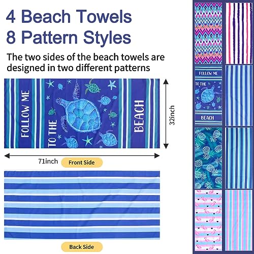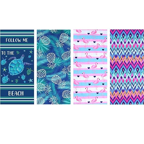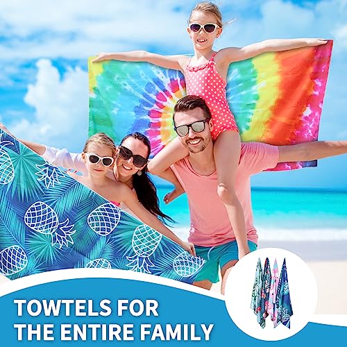 4 PACK Microfiber Sand Free Beach Towel Thin Quick Fast Dry Super Absorbent Oversized Large Lightweight Towels for Go back and forth Sports Pool Swimming Bath Camping Yoga Girls Women Adults