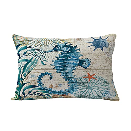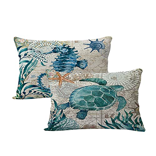 ❤2Pack sea theme rectangular cushion covers ,12X20 inches (30x50cm).Please allow 1~2cm deviation because of hand-cutting and sewing 。