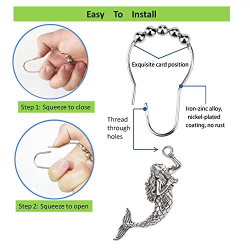 ❤FREE GLIDING ACTION : These rust proof hooks feature 5-roller balls to reduce friction and do away with noises, allow effortless gliding around the rod with virtually no effort at all