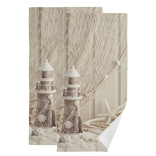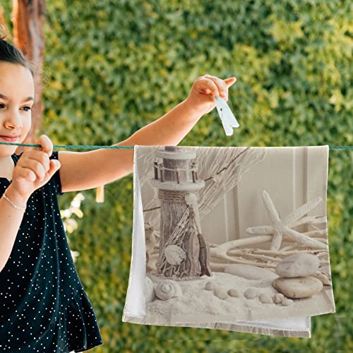 UNIQUE DESIGN: Our beige lighthouse bath hand towels are single-side printed. With strong finished edges prevent unraveling and make it durable use. The vibrant colors will not fade after many times of washing, and not easy to linted.