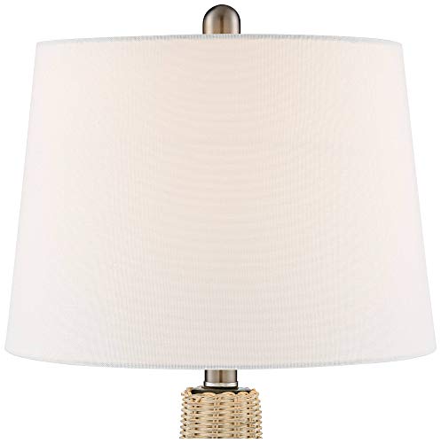 360 Lighting Alana Coastal Accent Table Lamp with Nightlight LED 22.75″ High Rope Blue Glass Gourd White Fabric Drum Shade Decor for Living Room Bedroom Beach House Bedside Nightstand Home