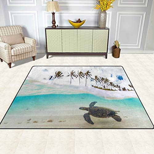 ALAZA Tropical Hawaiian Green Sea Turtle Palm Tree Area Rug Rugs for Living Room Bedroom 7′ x 5′