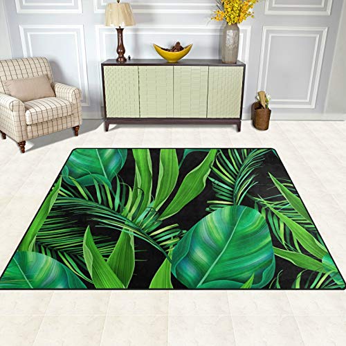 ALAZA Tropical Monstera and Palm Tree Leaves Area Rug Rugs for Living Room Bedroom 7′ x 5′