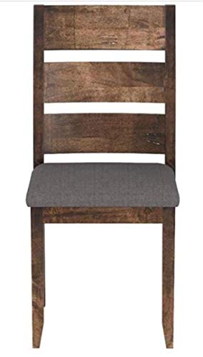 With classic glamour and contemporary comfort, this dining chair is an attractive upgrade to an eat-in kitchen or dining room. Crafted from hardwood with knots and organic wood grain, its modern silhouette has a delightful twist of rustic charm. Its back is strong, sturdy and supportive, with a slatted wood design that’s striking yet simple. A gray, padded seat makes this seat extra comfy while maintaining its minimalistic appeal. The stately design of this chair brings a hint of sophistication to a country-style home.