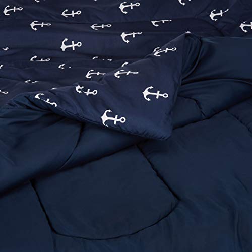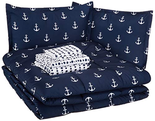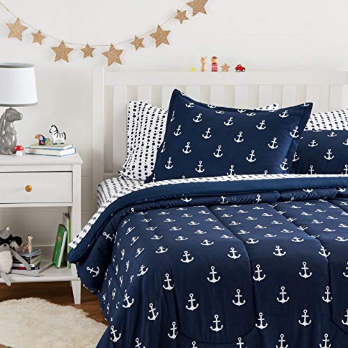 Amazon Basics Easy Care Super Soft Microfiber Kid’s Bed-in-a-Bag Bedding Set – Full / Queen, White Anchors