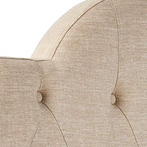 Latest design with a wood frame upholstered in beige fabric; wood legs