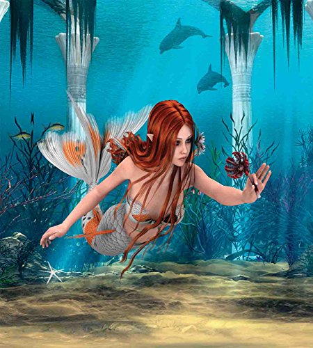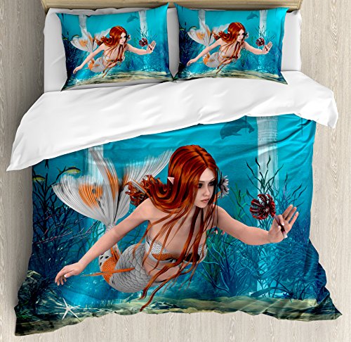 Ambesonne Mermaid Duvet Cover Set, Lifelike Mermaid Holding a Sea Lily Magic Aquatic World Theme, Decorative 3 Piece…
