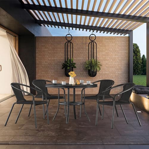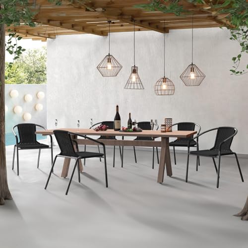 【STACKABLE CHAIRS】: This Out of doors patio set is not just comfortable, elegant and stylish additionally it is stackable! 4 Wicker Metal Patio Dining Chairs will also be stacked when not in use, saving a large number of storage space.