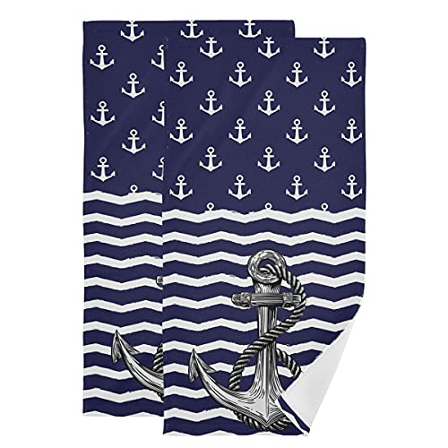 ✿【Size & Material】Our nautical anchor bath hand towel, 72×36.5cm/28.3×14.4 inch, set of 2, usual size for most people. This anchor navy blue face towel is made of polyester and cotton, light, thin, breathable, high absorbent and durable. Furthermore, it does not fade.