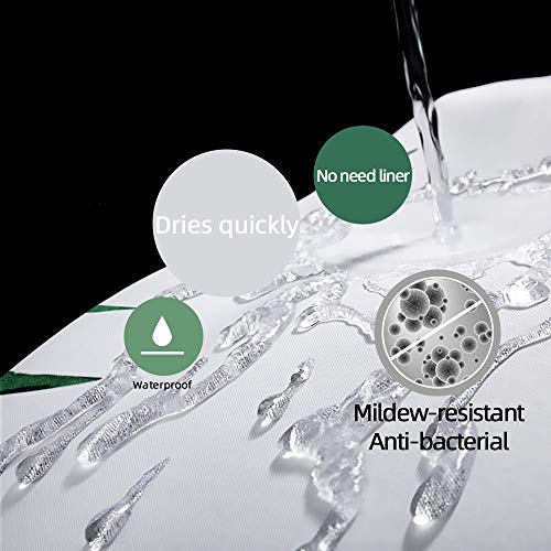 70 inches x 70 inches – Top quality polyester fabric, No liner needed, Includes free hooks Great for master bathroom, guest bathroom, child’s bathroom, or basement bathroom.