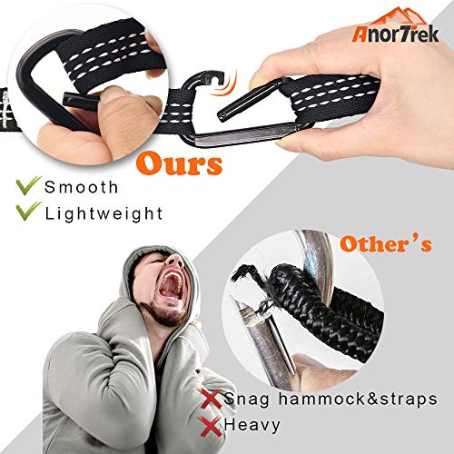 About AnorTrek – This is our third camping hammock, it is super lightweight, perfect for backpacker. We focus on camping gears, especially quality camping hammocks. We also have a camping hammock with two tree straps (each 18+1 loops) and a new design camping hammock with mosquito net, they can meet the needs of different travelers. Pls click on the blue “AnorTrek” above for more products details.