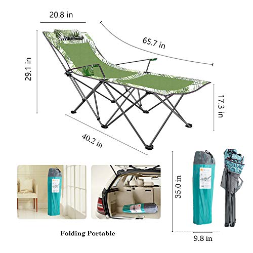 Unfolding size is 65.7L” X 20.8W” X 29.1H” which is more wider and more comfortable than other chairs, can accommodate a person up to 185CM tall and weighing 300 Lbs.