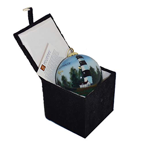 Lighthouses like you’ve never seen them before. This beautiful, reverse-painted glass ornament shown in full 360 degrees. It continues an ancient art-form prized by collectors. The artists choosing from a selection of miniature curved and bent-shafted brushes, painstakingly hand paints each minute detail on the inside of the ornament. The craft requires the artists to again and again insert the brush through the small opening in the sphere; first to outline the design, and then to detail the colors one at a time. All of the process for Each and every ornament requires up to two days. No two pieces are identical, making this inside-painted glass ornament a keepsake to be treasured from generation to generation.