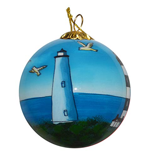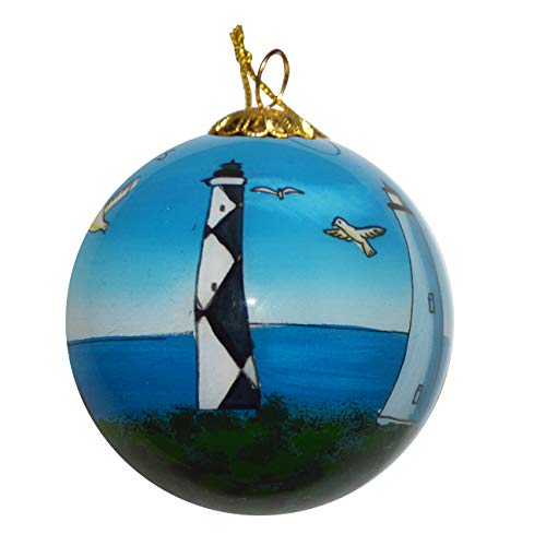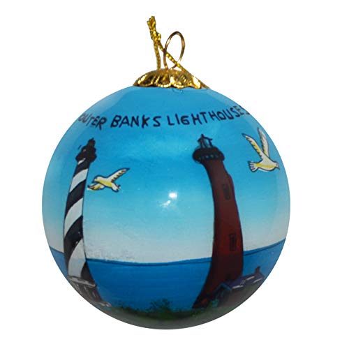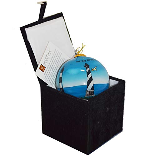 Outer Banks like you’ve never seen it before. This beautiful, reverse-painted glass ornament shown in full 360 degrees. It continues an ancient art-form prized by collectors. The artists choosing from a selection of miniature curved and bent-shafted brushes, painstakingly hand paints each minute detail on the inside of the ornament. The craft requires the artists to many times insert the brush through the small opening in the sphere; first to outline the design, and then to detail the colors one after the other. All of the process for Every ornament requires up to two days. No two pieces are identical, making this inside-painted glass ornament a keepsake to be treasured from generation to generation.