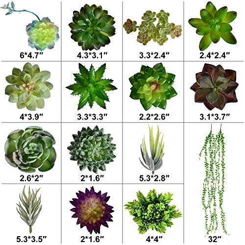 Size – The different fake succulents are about 1.5″- 5.9″ in diameter and 1.9″ -31,9″ in length. Our size is big enough, and the hanging plants are have longer lengths