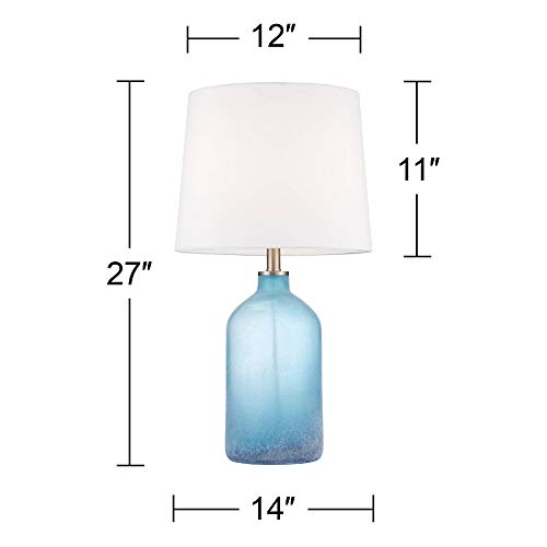 Aston Coastal Contemporary Table Lamps 27″ Tall Set of 2 Frosted Sea Blue Glass Brushed Nickel White Drum Shade for Living Room Bedroom Beach House Bedside Nightstand Home – 360 Lighting