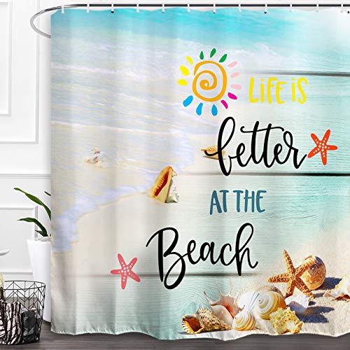 【Beach Starfish Seashell Printing and Weighted Hem】High definition digital print technology, no fading, bring you a vivid visual experience, your bathroom all the time looks pretty. Beach shower curtain with weighted hem, keeps perfect drape, give you a comfortable shower