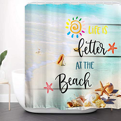 【Construction and Easy Care】Sea wave beach theme shower curtain contains reinforced rustproof metal grommets for easy hanging and 12 durable plastic hooks. Cleaning and maintenance are easy! Just toss it in the washing machine