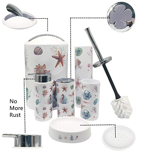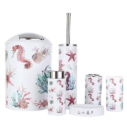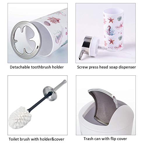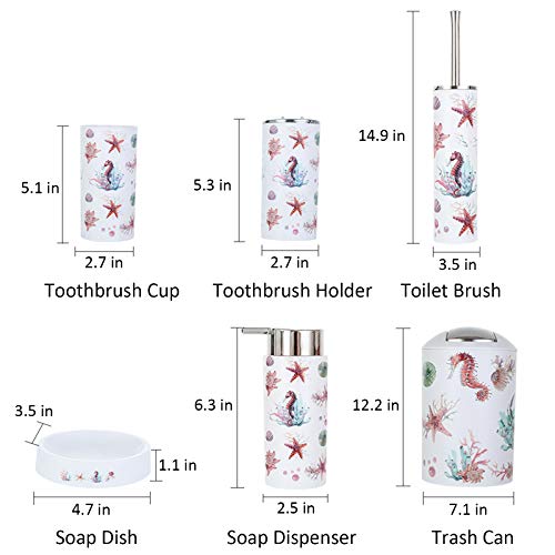 6 Pcs Bathroom Accessories Kids Bathroom Set Toothbrush Holder Soap Dispenser Set with Trash Can, Beach Bathroom Decor Wash Set (Color #5-Starfish)