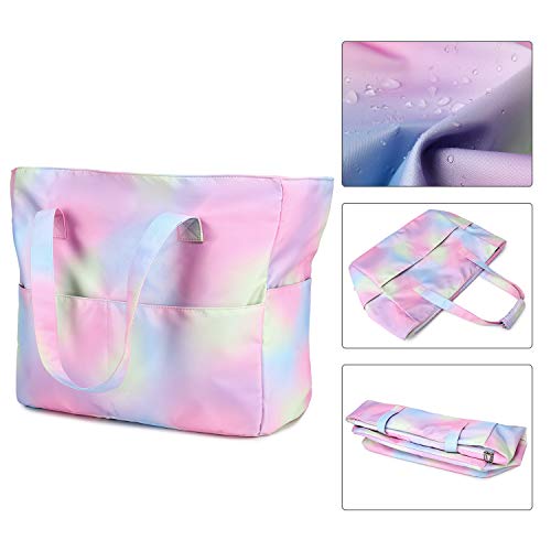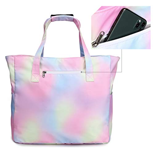 Large family beach bag in size 17.5*7.87*15.75 inches for women ladies to go to beach or pool, with smart design wet compartment to hold dirty clothes and wet towels after sports