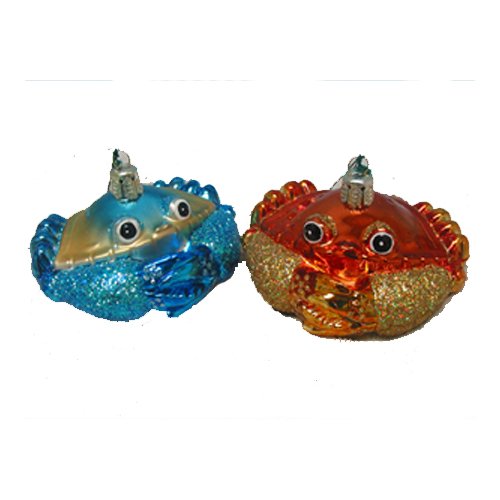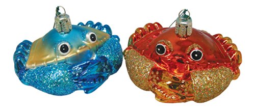 Beachcombers 2 Blown Glass Crab Christmas Ornaments, Red and Blue
