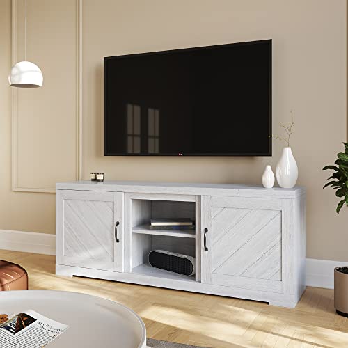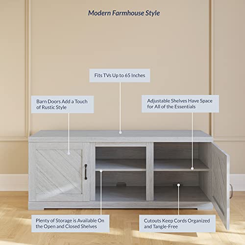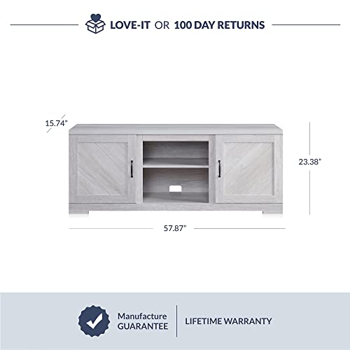 [AMPLE STORAGE] Keep your space neat and organized with this TV table featuring two cabinets and a pair of open shelves to store electronics, DVS, books, and accessories.