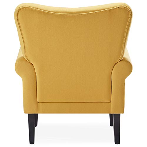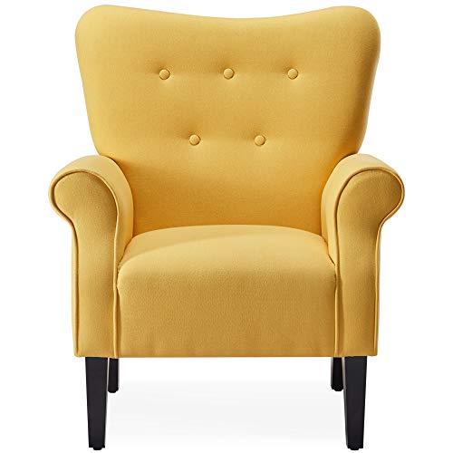 [MODERN & RETRO DESIGN] A unique combination of classic modern design with a wingback silhouette and high backrest for a unfashionable feel.[PLUSH UPHOLESTRY] Trendy citrine-yellow colored upholstery with tufted detailing creates a sophisticated look with a pop of color.