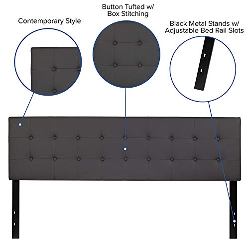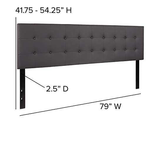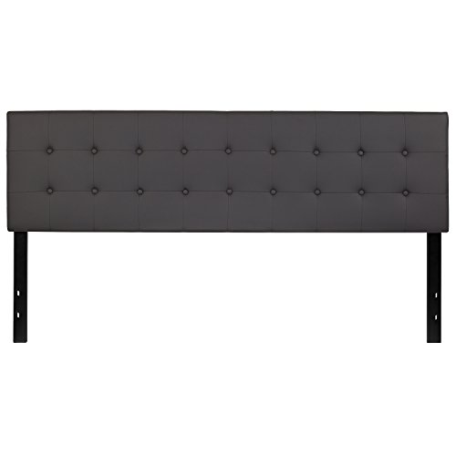 BizChair Button Tufted Upholstered King Size Headboard in Gray Vinyl