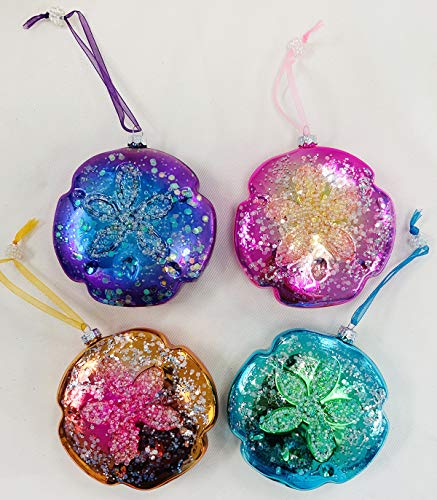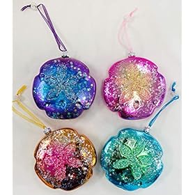 Real blown glass Christmas ornaments in sand dollar shapes. Ornaments measure approximately 3.75″ in diameter x .1″ thick. These are to be had in multicolor and white. Great to your place on the beach or a unique Christmas tree at home!