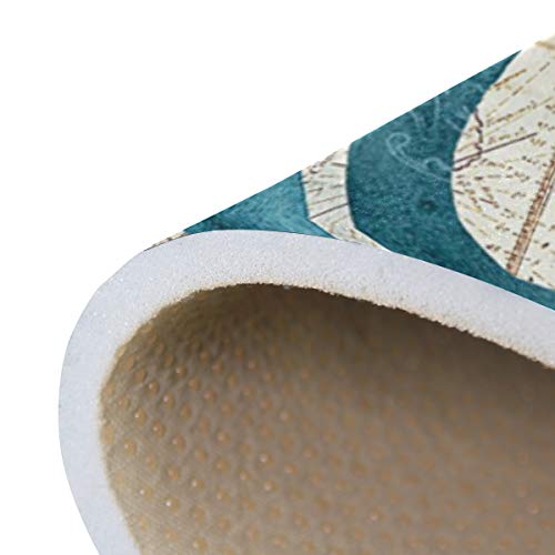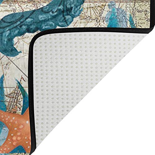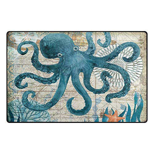 Blue Octopus Nautical Map Area Rugs 5′ x 3′ Door Mats Indoor Polyester Non Slip Multi Rectangle Carpet Kitchen Floor…