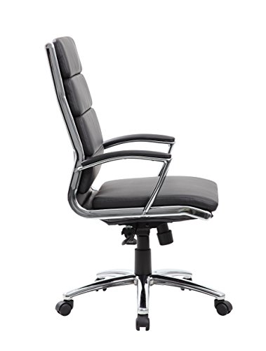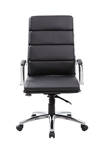 Upholstered with ultra soft, durable and breathable CaressoftPlus upholstery. Metal chrome plated arms topped with hard arm pads. Heavy duty 2 paddle spring tilt mechanism with infinite lock. Upright locking position. Pneumatic gas lift seat height adjustment. Adjustable tilt tension control. Large 27″ chrome base for greater stability. Hooded double wheel casters.