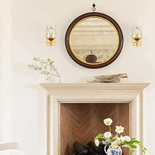 2 Pack Farmhouse Brass Finish Glass Sconces Bathroom Vanity Lighting