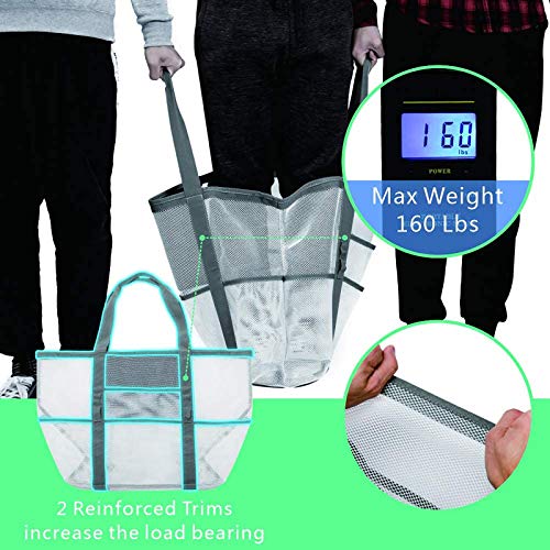Mesh Design: The mesh design keeps the inside items ventilated and sand falls through the mesh, you can put the bag on the wet sand and beside the pool, it is easy to clean and dries quickly.