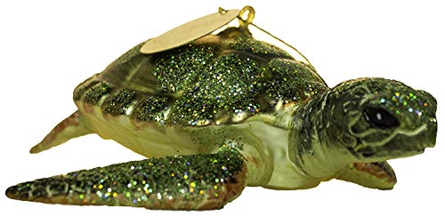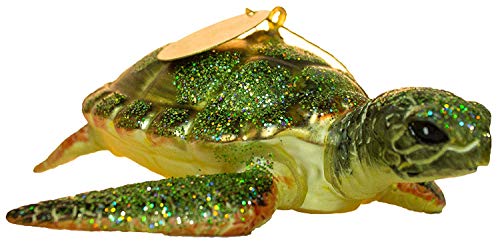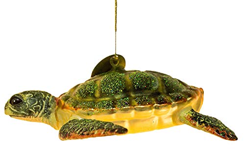 The pretty sea turtle design, rich green color, hand-blown glass texture and glitzy glitter accents of this Christmas holiday ornament make it a beautiful coastal addition to your holiday decor that you’ll cherish forever.
