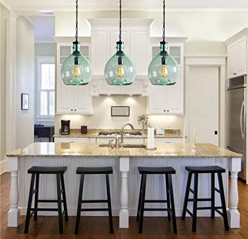 CASAMOTION Pendant Lighting Rustic Green Glass Foyer Hanging Light Fixtures Kitchen Island Drop Ceiling Chandelier…