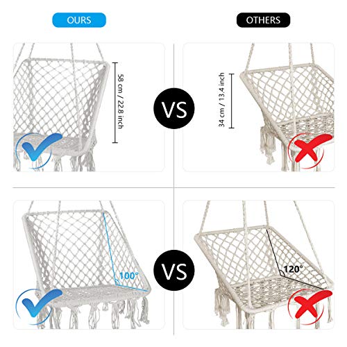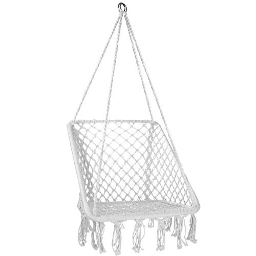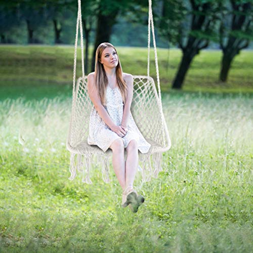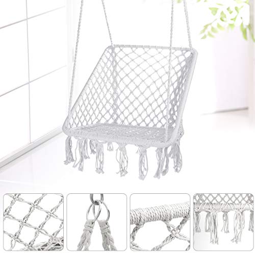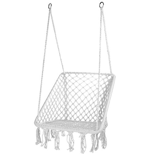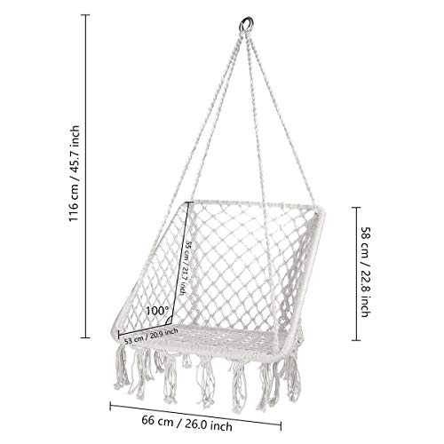 High Quality — Made of 100% handmade cotton, the rope and swing design feature macrame net chair pattern with fringe tassels. 265 pounds weight capacity, very safe and suitable for both adults and children.