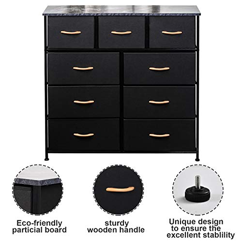 CERBIOR Wide Drawer Dresser Storage Organizer 9-Drawer Closet Shelves, Sturdy Steel Frame Marbling Wood Top with Easy…